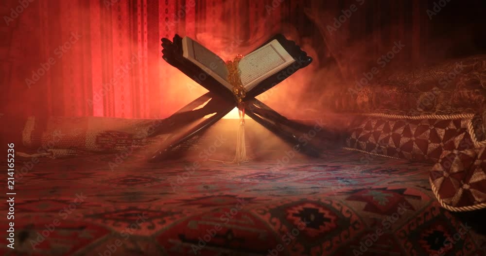 ramadan ramazan eid Mubarak arabische Symbole, die auf roten Hintergrund der Schnur herunterfallen
